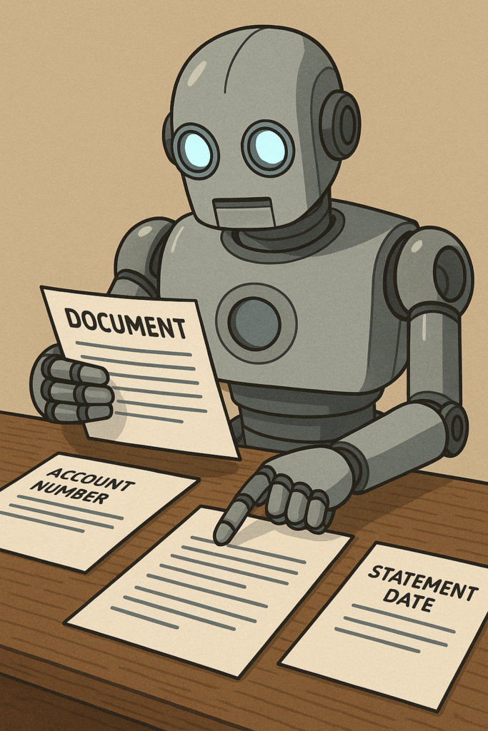 A script that takes the output from the document classifier and extracts properties for the document, depending on the classification of the document. E.G., a “bank_statement” will have these properties extracted: