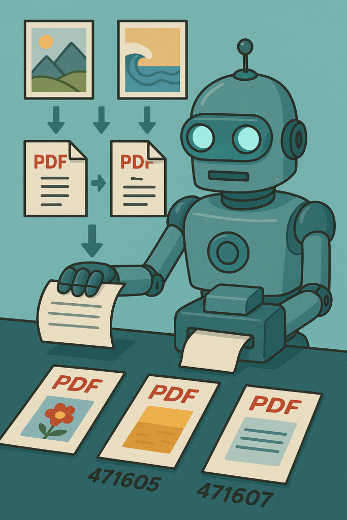 This project reads image files of all sizes, resizes them for 8 1/2 x 11 paper, converts the image to a PDF, extracts metadata (if available) for the date of the photo, and adds a Bates number to each image.